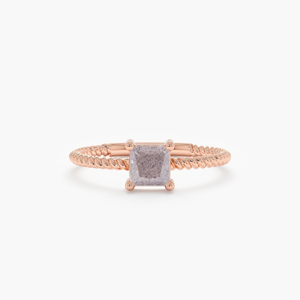 Add a touch of mystique to your ensemble with The Karat Store’s enchanting 18k Solid Gold Square Labradorite Ring. Crafted with care, this ring features a twisted rope band in high-polish solid gold, adding unique interest and charm to your ring set. The natural labradorite centerpiece, with a total carat weight of 0.40 ctw, captivates with its iridescent hues, offering a pop of color to your daily look.