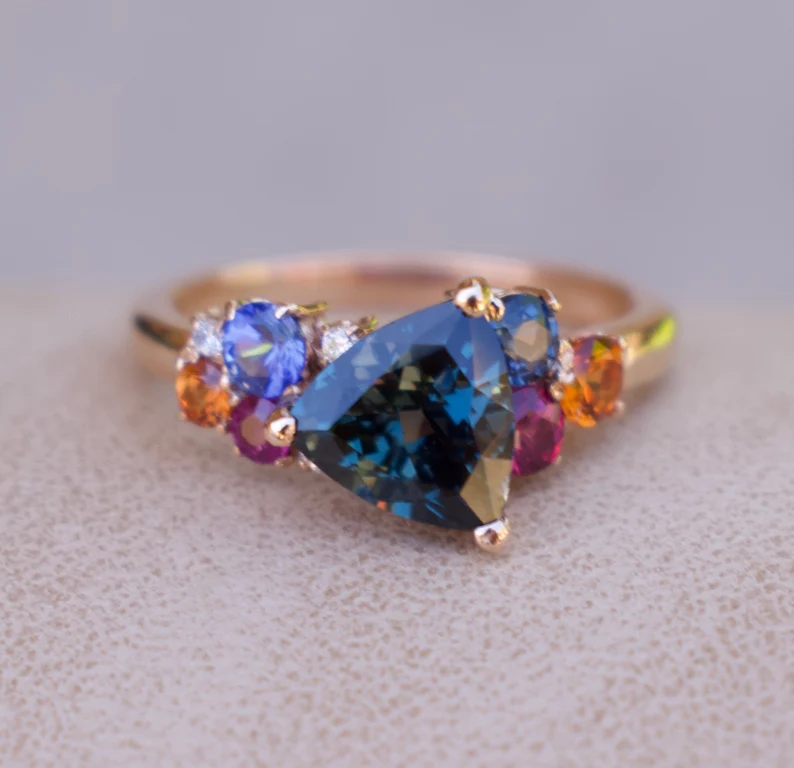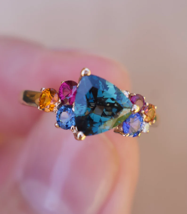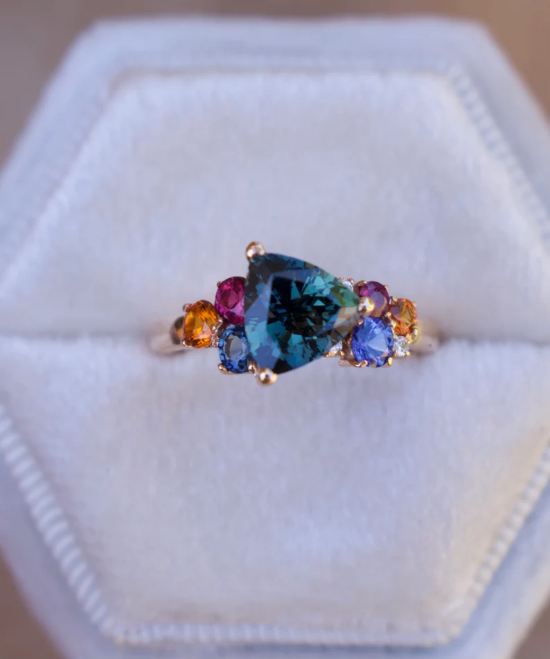 A perfect choice for those who appreciate distinctive, colorful engagement rings or a statement piece that reflects individuality and charm.