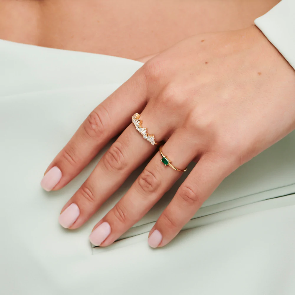 This stunning ring, 18k Tapered Baguette Diamond Flush Ring, embodies the blend of modern elegance with the age-old design.