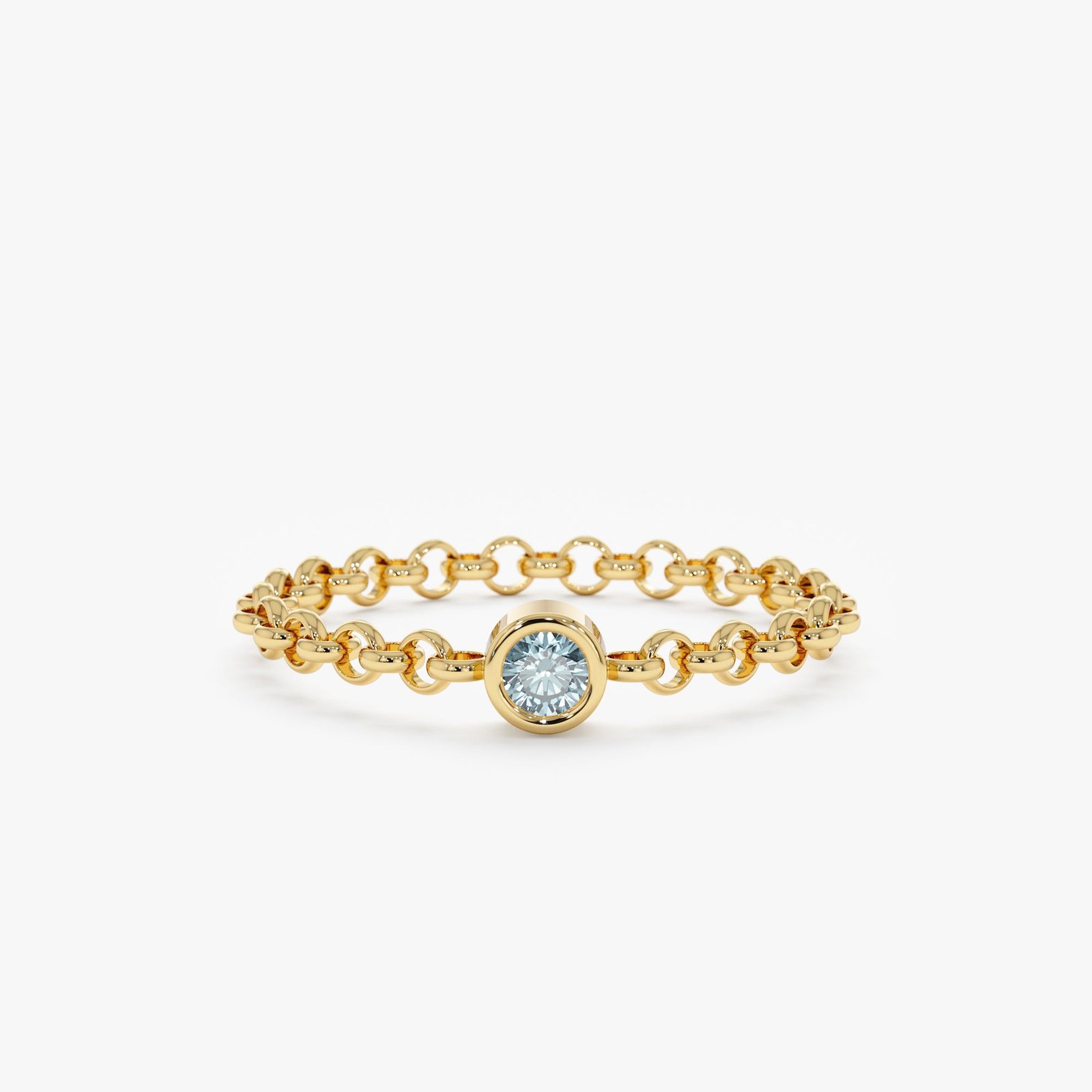 The aquamarine on this chain ring adds a beautiful pop of color. It’s a great everyday piece.
