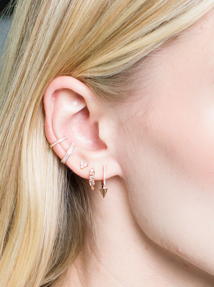 The Avery Natural Diamond Spike Huggies are the perfect blend of edgy and elegant. Made from 18k solid gold and adorned with 30 dazzling diamonds weighing 0.09 ct, these huggies are available in white, rose, or yellow gold.