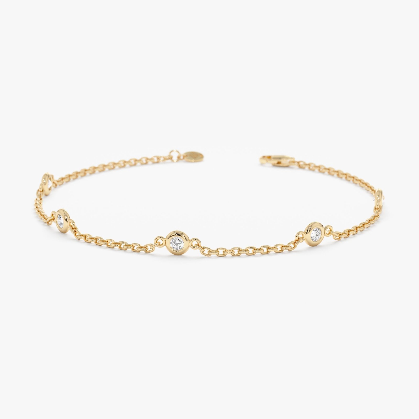 Elevate your style with our Dainty Diamond By the Yard Bracelet, featuring sparkling round diamonds set in polished bezels on a dainty 14k gold chain.