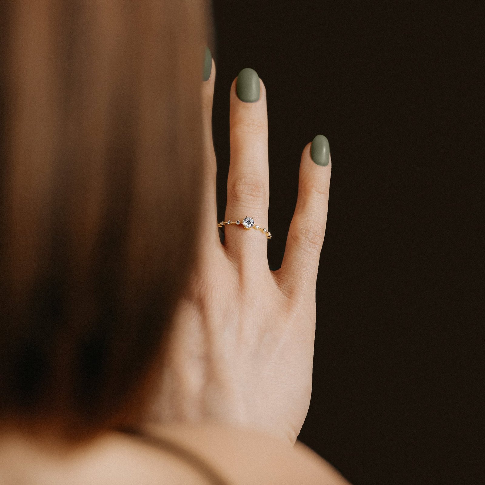 The Diamond Distance Ring is a beautiful and contemporary redefinition of the traditional engagement ring, made to symbolize the journey and connection of two souls. With spectacular moissanite diamonds, this ring promises brilliance and fire similar to those of natural diamonds, hence an exceptional choice for the special moment.