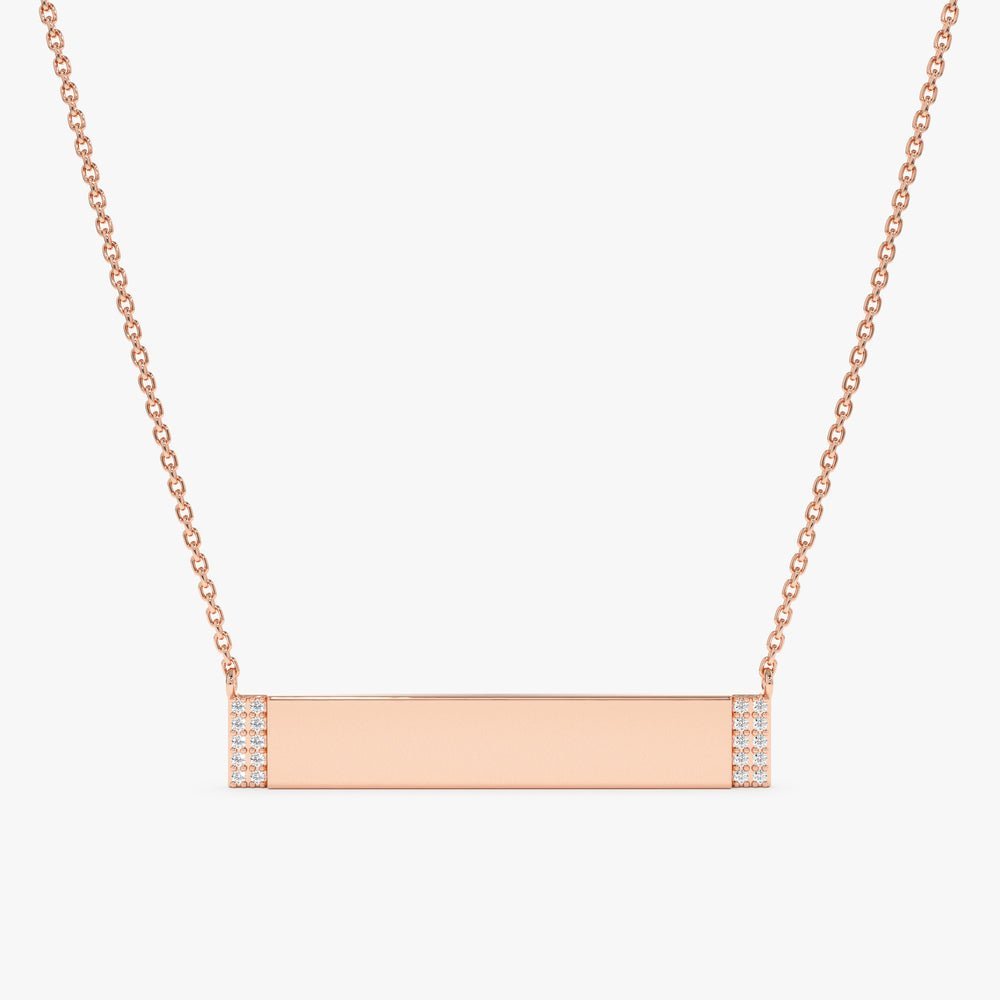 The dimensions of the bar measure 5 x 30 mm, providing ample space for engraving while maintaining a sleek and refined appearance. Whether worn as a standalone piece or layered with other necklaces for a personalized look, this Engravable Gold Plate Diamond Necklace is sure to make a statement.
