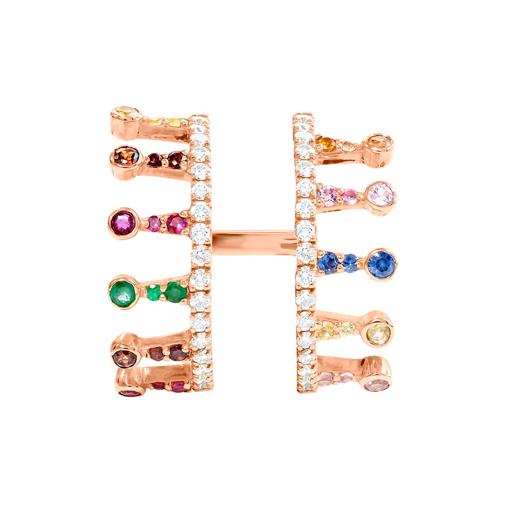 The 14K Solid Gold Festival Crown Ring shows opulence in its best as a combination of diamonds and multicolor sapphires.