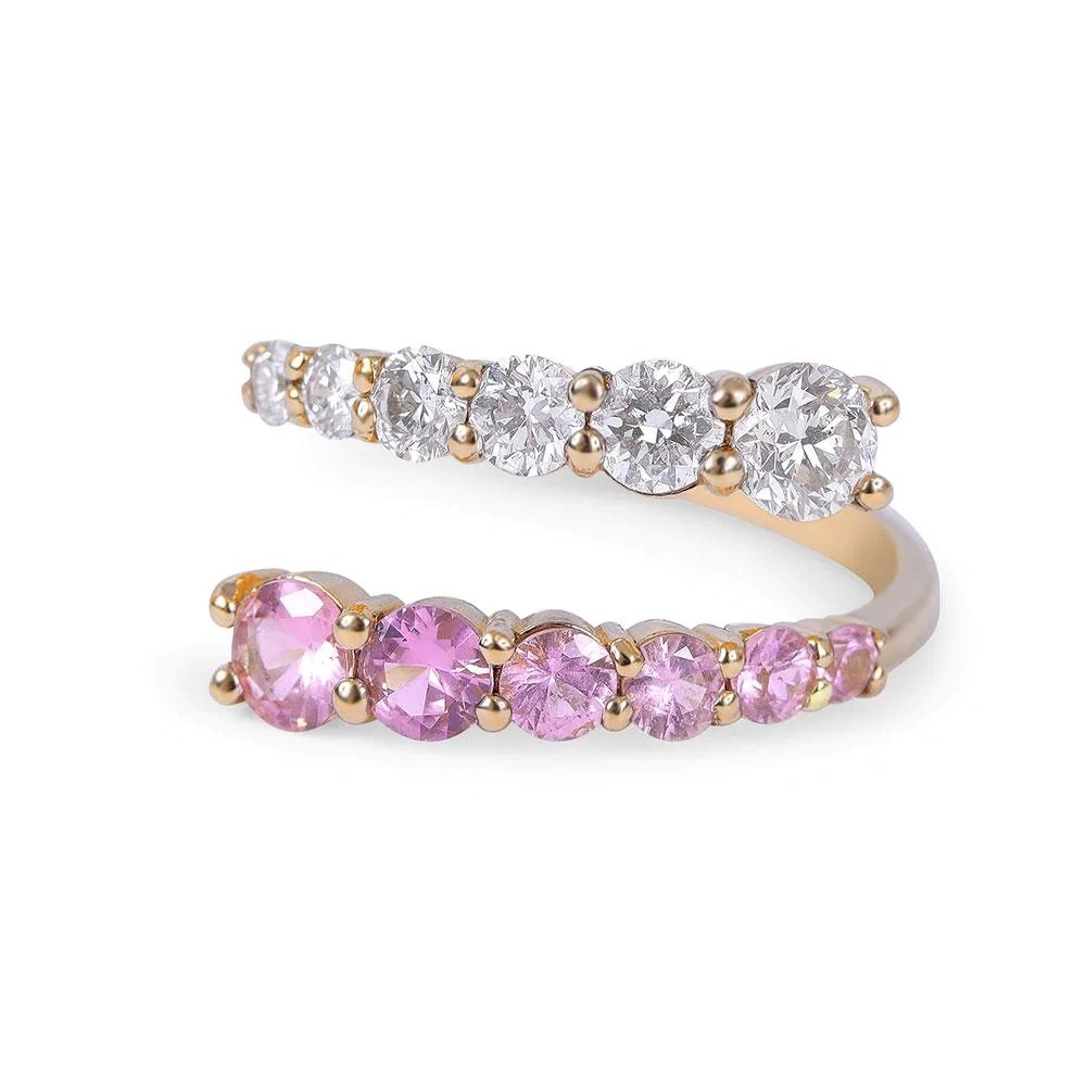 This Graduated Diamond & Pink Sapphire Wrap Ring is more than just an accessory it is a symbol of elegance and unique style. It can be worn on special occasions or as a luxurious everyday piece, effortlessly complementing a variety of outfits from casual to formal.