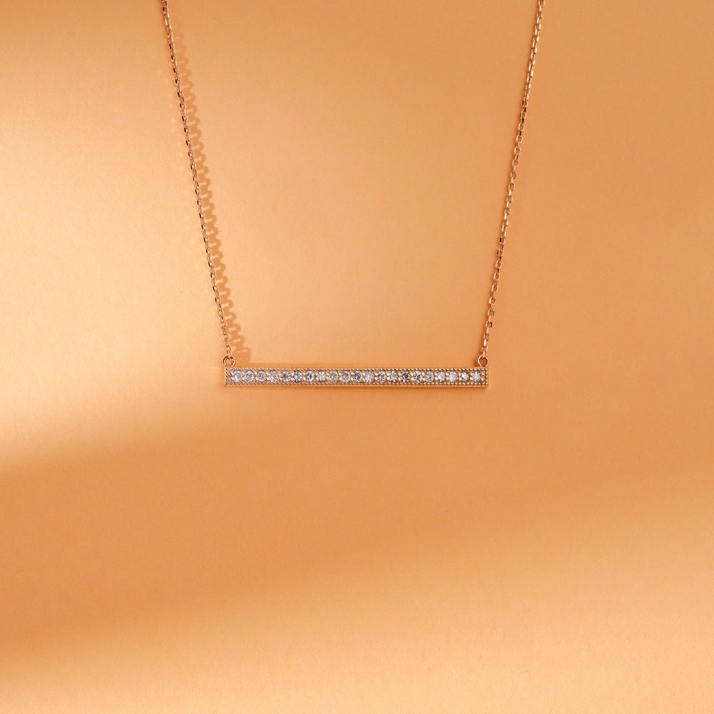 Whether worn alone as a statement piece or layered with other necklaces for a trendy look, our Long Diamond Bar Necklace is sure to become a staple in your jewelry collection.