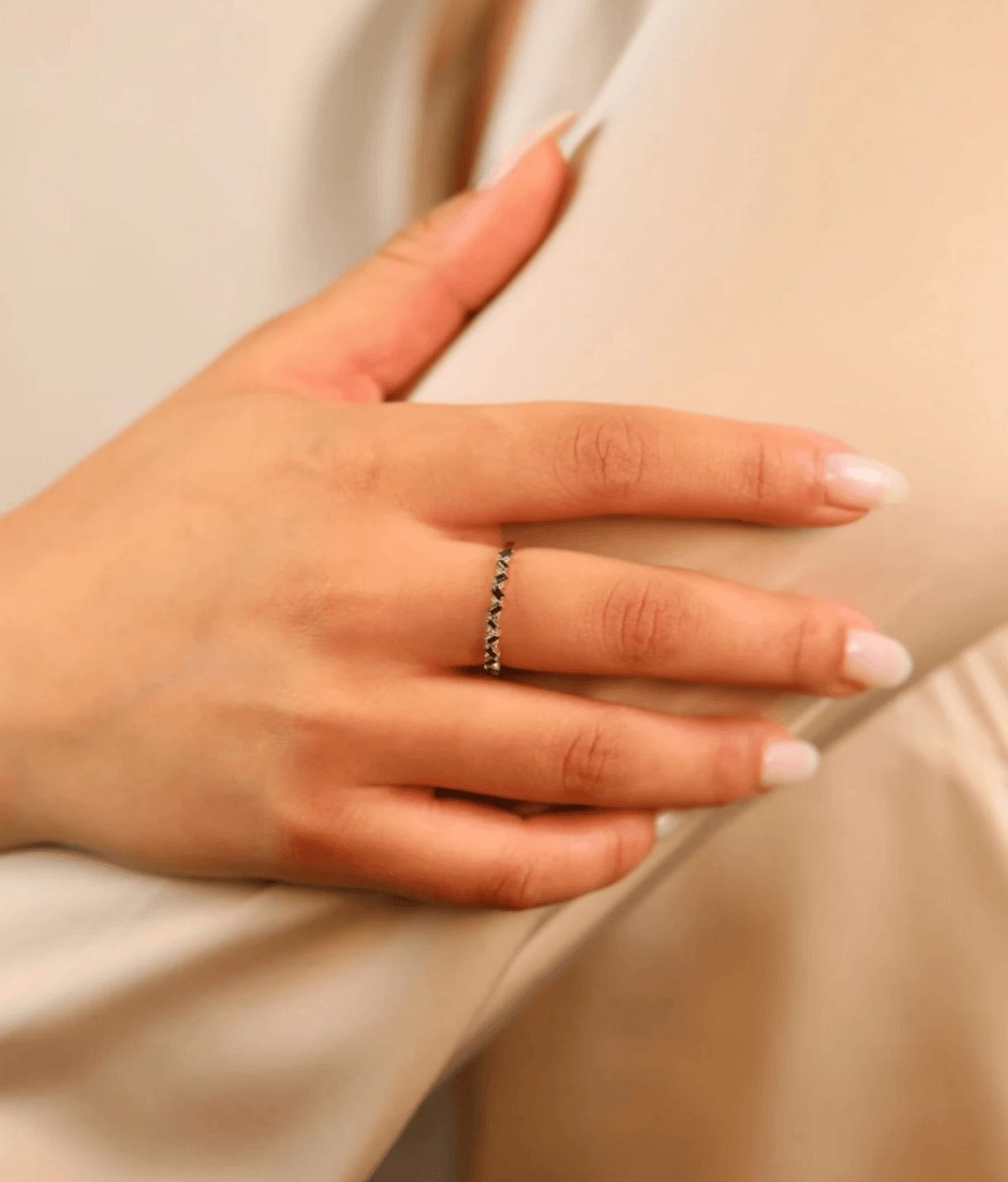 14K Solid Gold Black Natural Diamond Half Eternity Ring