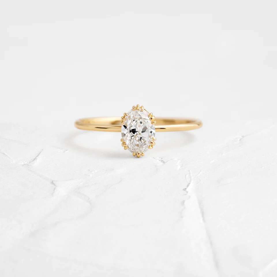 Experience the refined elegance of this 14K solid gold threaded ring which is accentuated by the stunning 0.7-carat oval cut moissanite diamond.