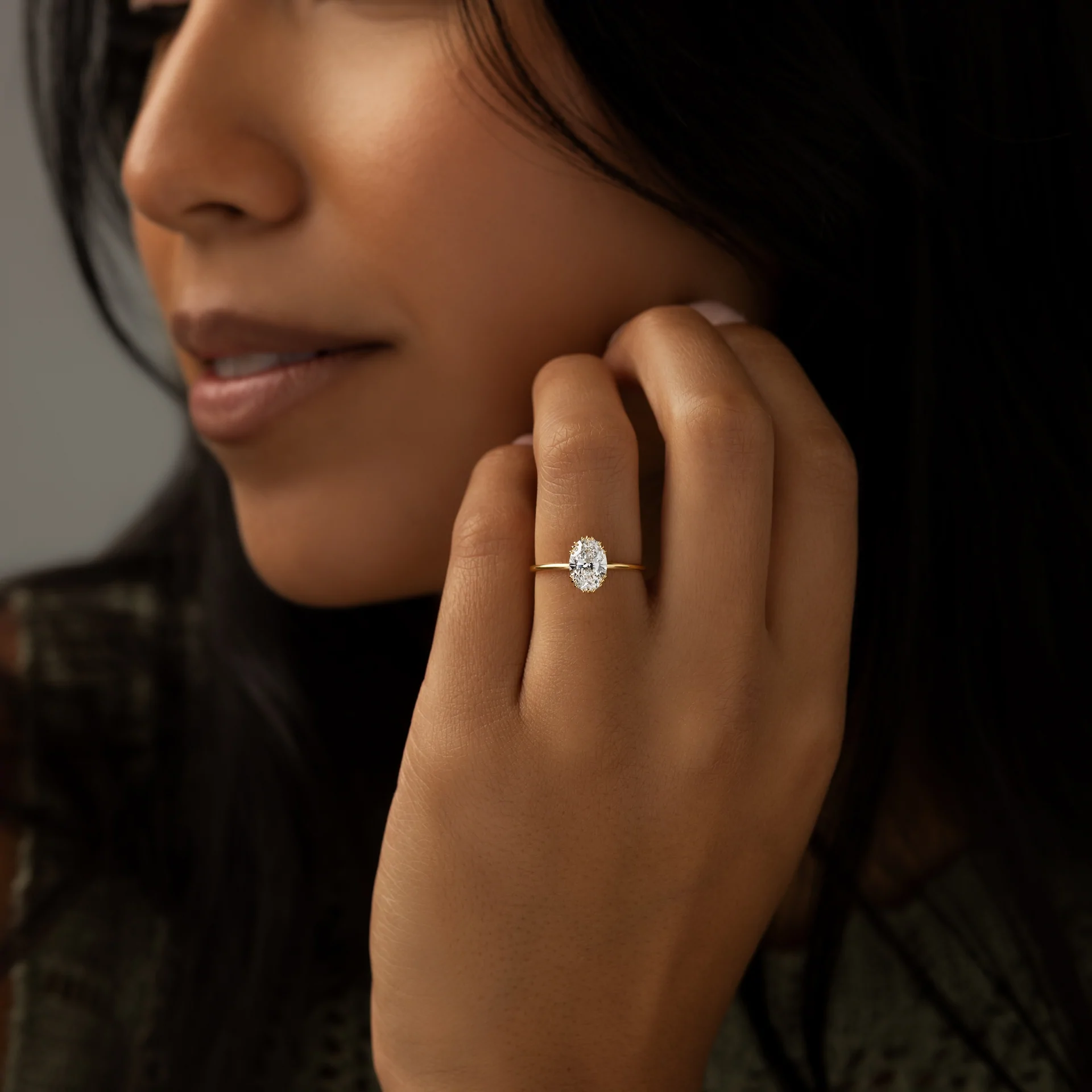 This threaded ring features a stunning oval-cut moissanite diamond set in a sleek, minimalist band — perfect for effortless elegance and everyday wear.