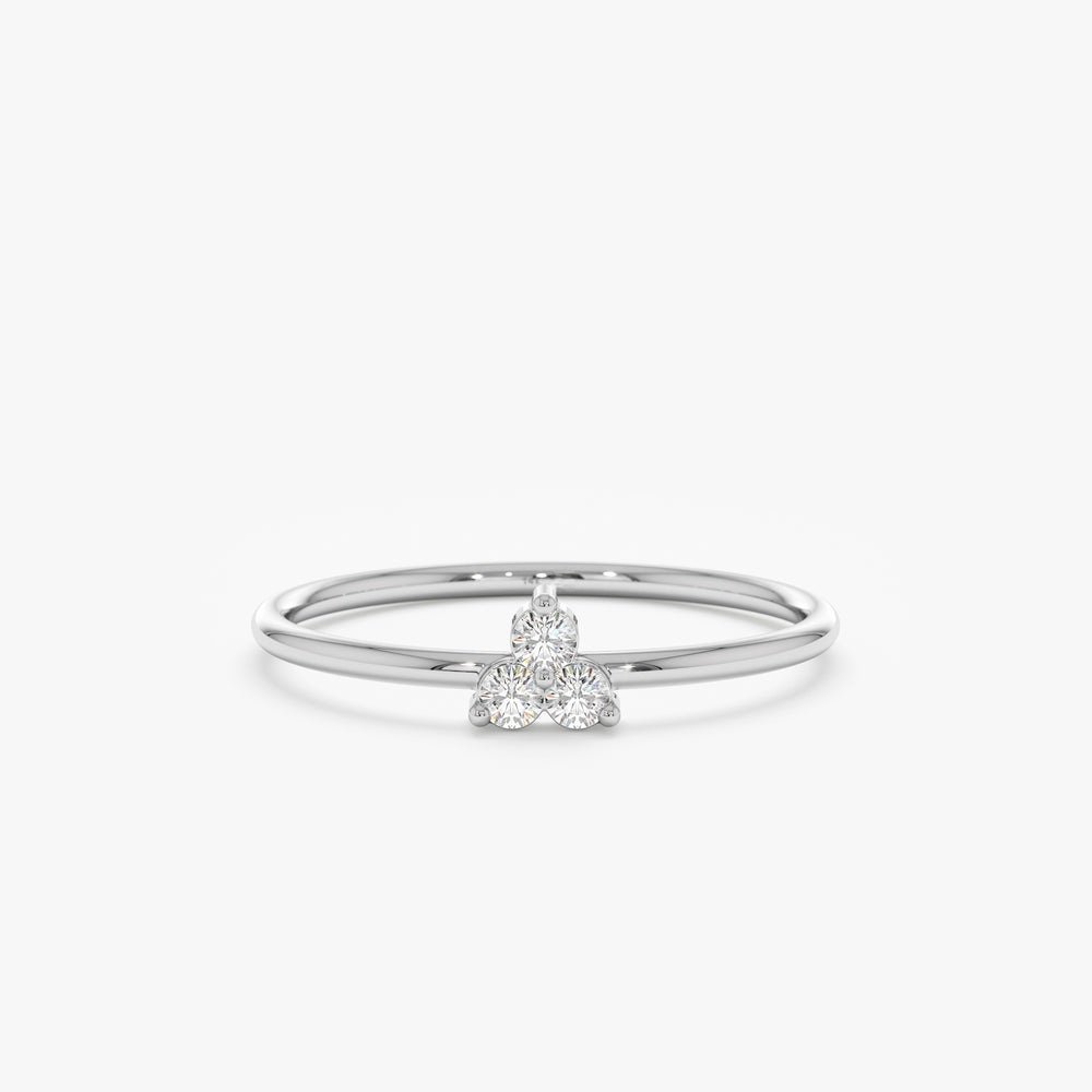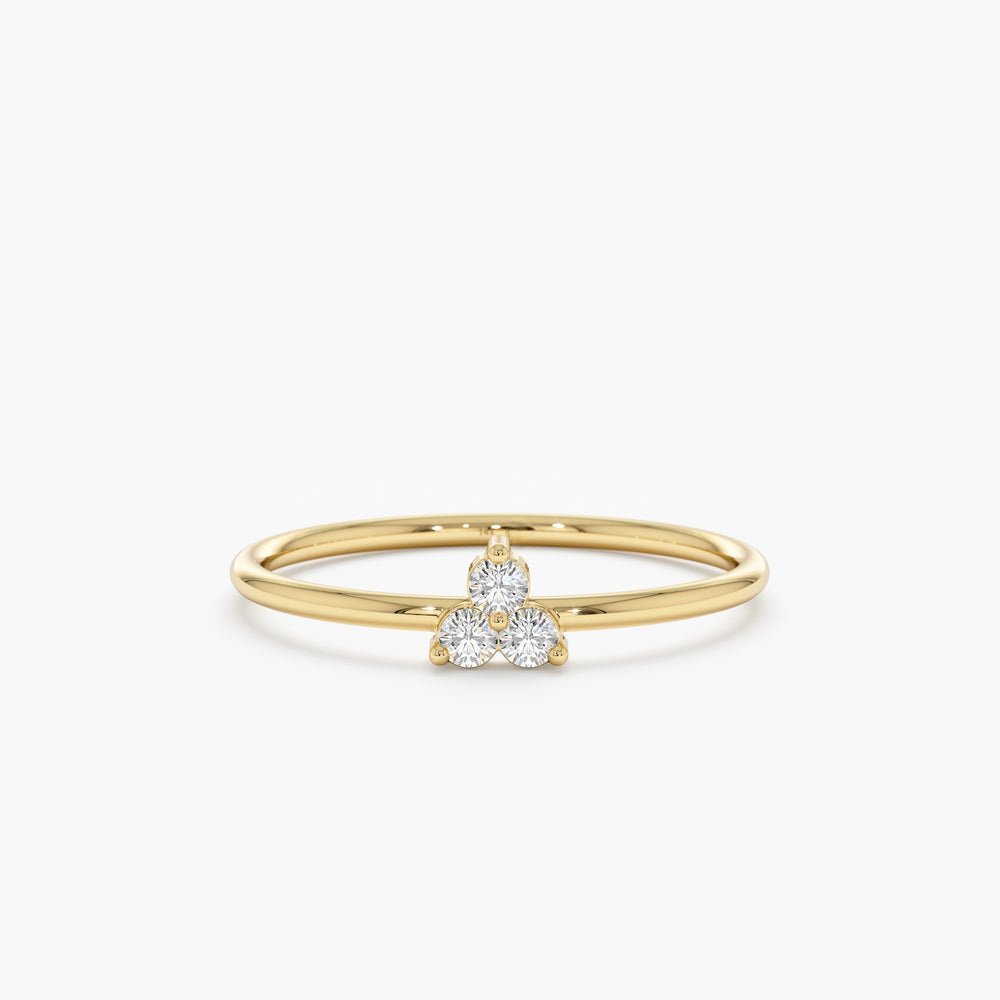 Triple diamond cluster ring in 14K solid gold with 0.09ct GH/VS-SI diamonds. Available in white, yellow, or rose gold. GIA & BIS certified.