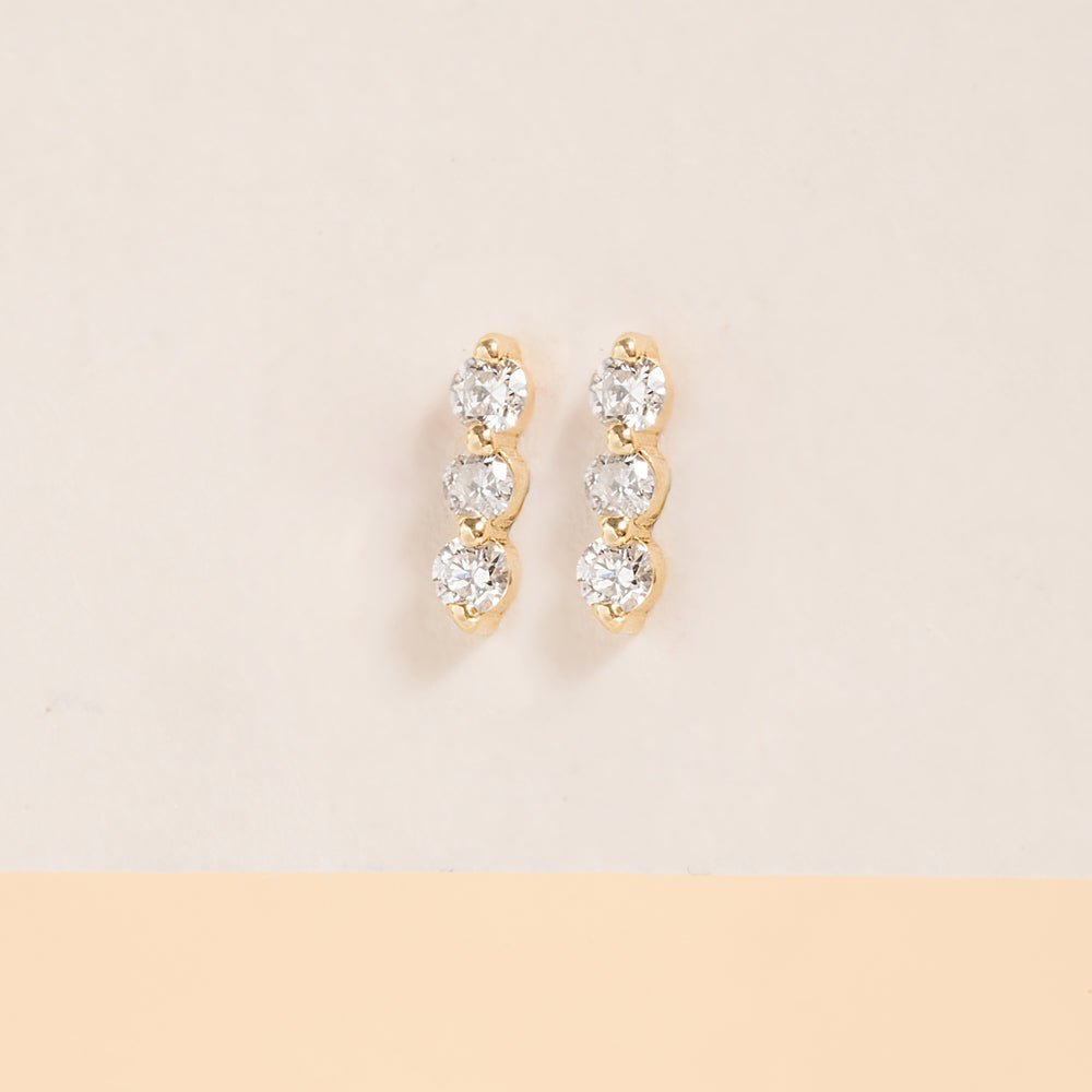 Elevate your style with our Triple Natural Diamond Bar Studs. Crafted in 18k gold, these minimalist earrings feature three sparkling diamonds in a horizontal bar formation for a touch of sophistication.