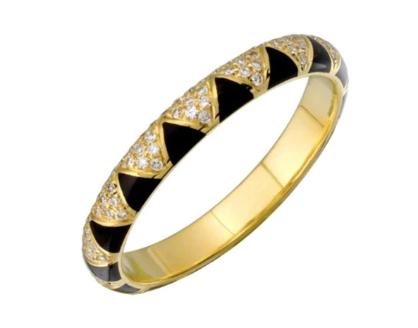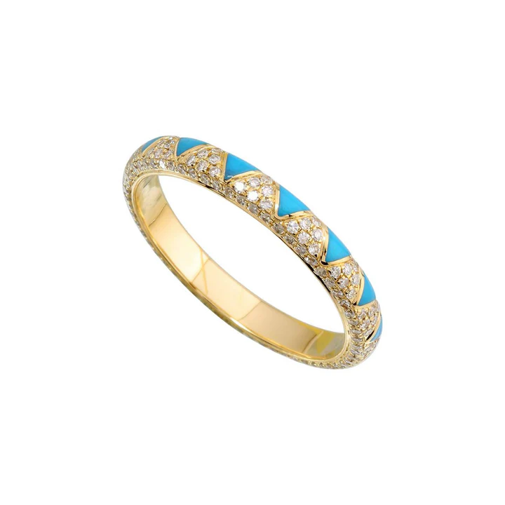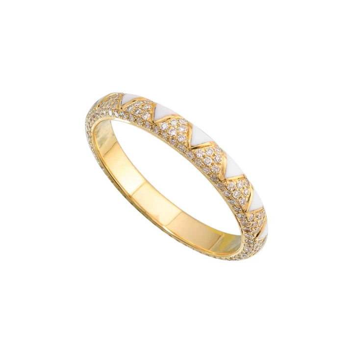 Zigzag enamel ring in 18k solid gold with 150 natural diamonds (0.34 ctw, G-H/VS-SI). 2.5 mm wide, GIA Certified, BIS Hallmarked, bold and unique design.