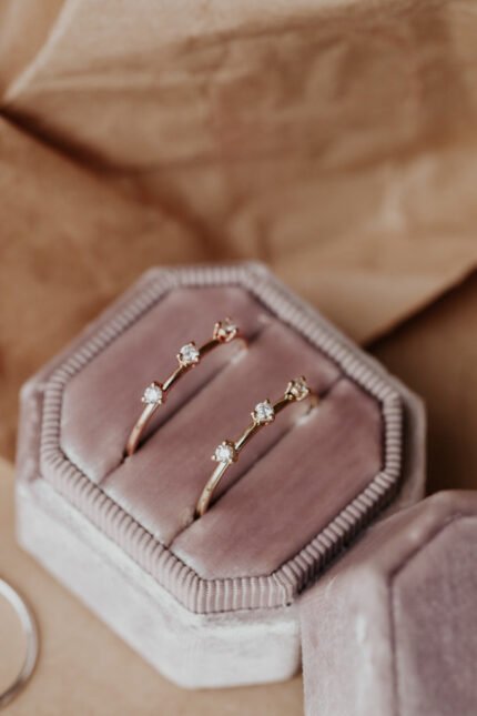 Three Diamonds in Migraine Bezel Band , Minimal Gold Ring