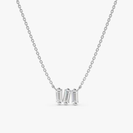 Embrace understated elegance with our Triple Baguette Diamond Cluster Necklace, featuring three sparkling baguette diamonds in a sleek 14k gold setting