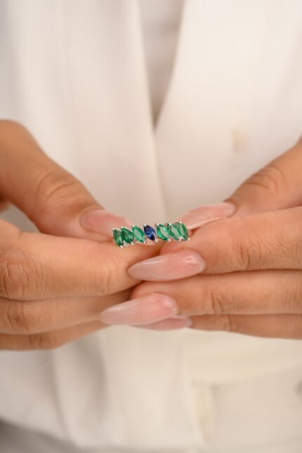 18K 纯金绿宝石蓝宝石永恒戒指