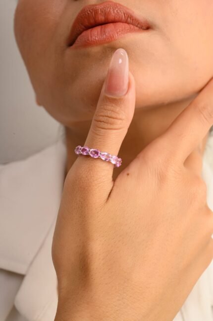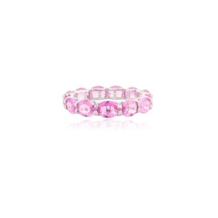 18K 纯金粉红蓝宝石祖母绿切割永恒戒环