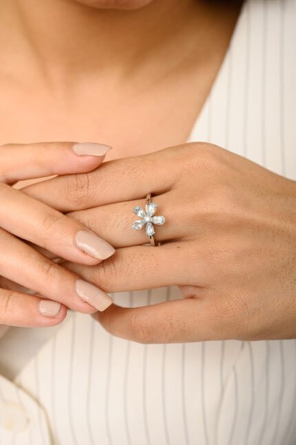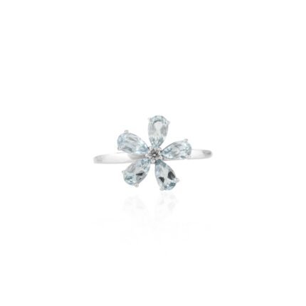 14K 纯金海蓝宝石精致花卉戒指