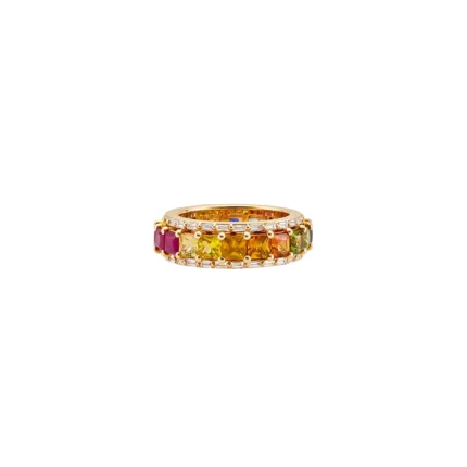 14K 纯金节日彩虹旋转戒指