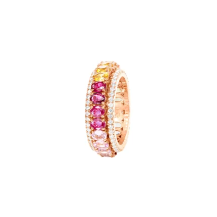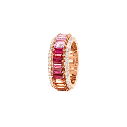 14K 纯金渐变钻石和粉红蓝宝石缠绕戒指