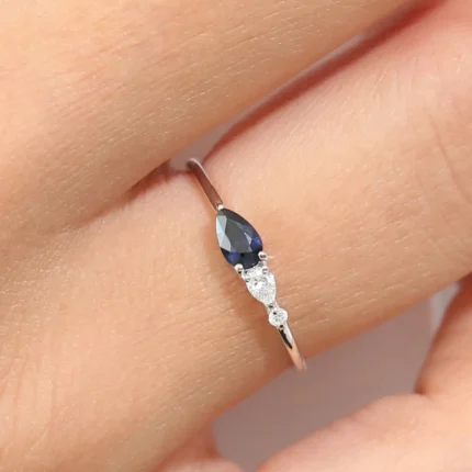 18K 纯金梨形天然蓝宝石配梨形钻石戒指