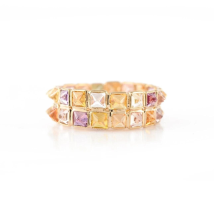 14K 纯金镶嵌多颗蓝宝石和钻石的半永恒戒环