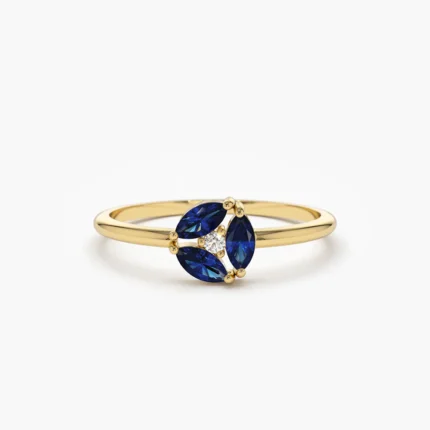 14K 纯金天然钻石和蓝宝石哈姆萨戒指