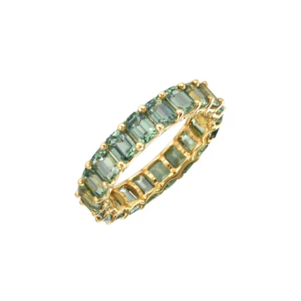 18K 纯金绿色蓝宝石祖母绿切割永恒戒指