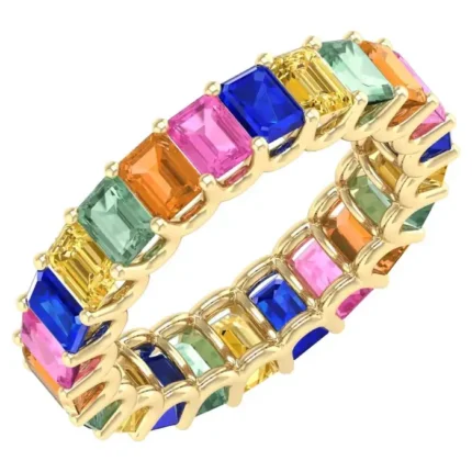 18K 纯金 5.26 克拉祖母绿形切割蓝宝石和钻石永恒戒环