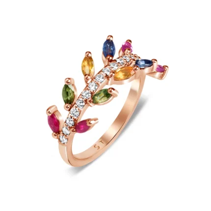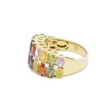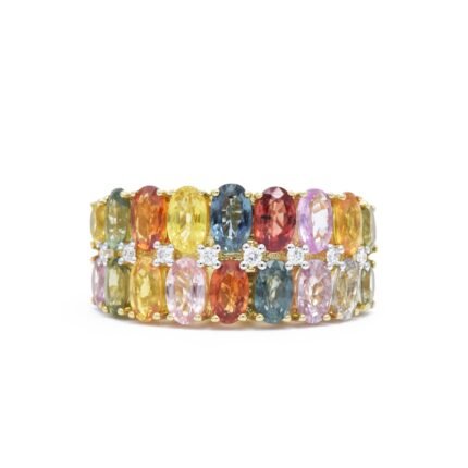 18K纯金多色蓝宝石双排戒指