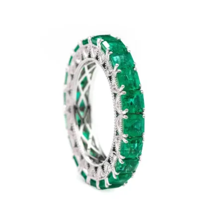 18K 纯金 1.34 克拉天然钻石和祖母绿明亮式切割永恒戒环