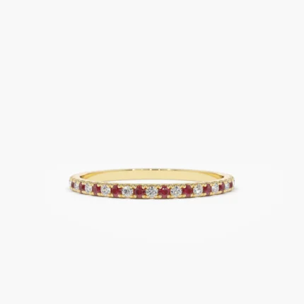 18K 纯金红宝石和钻石交替永恒戒指