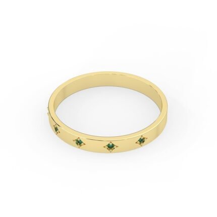 18K纯金永恒祖母绿和钻石结婚戒指