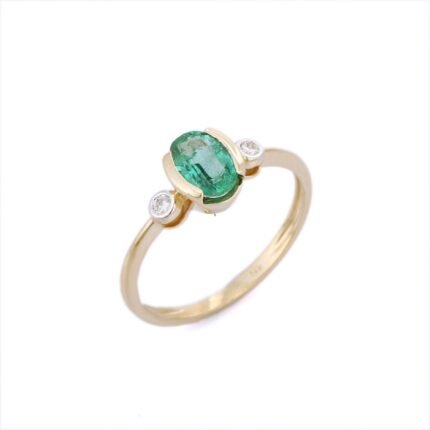 经典的 14K 纯金戒指,镶嵌一颗生机勃勃的绿色祖母绿,彰显永恒的优雅、日常的精致和自然之美。