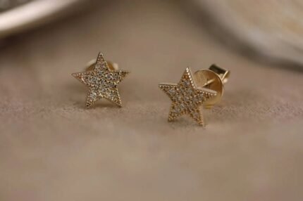 14K 金实验室培育密镶钻石星形耳钉