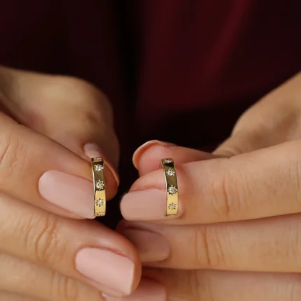 14K 星形镶嵌极简天然钻石耳环