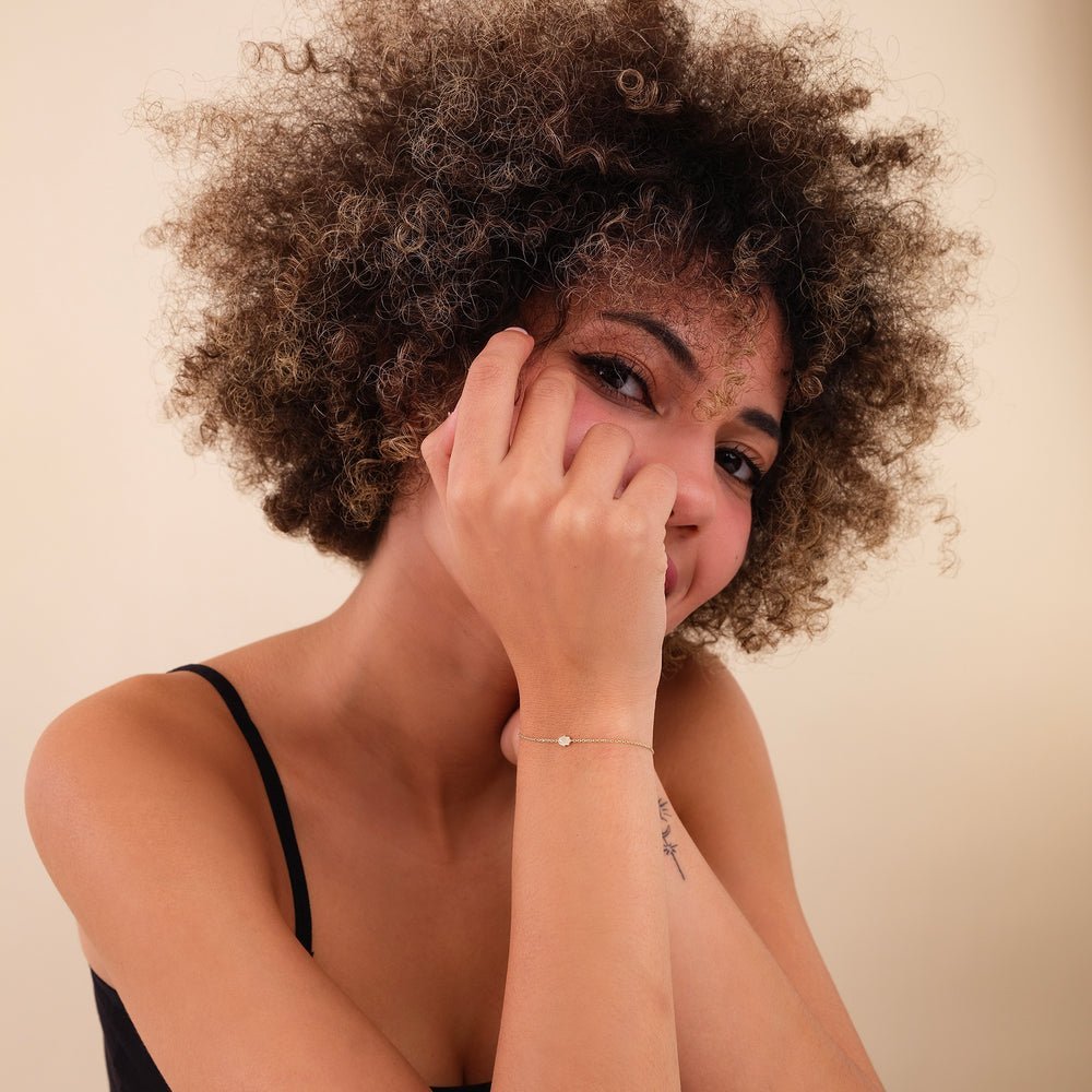 单颗钻石 Hamsa 手链象征着保护和优雅。它以 14K 金打造,侧向的哈姆萨装饰着一颗闪闪发光的钻石。
