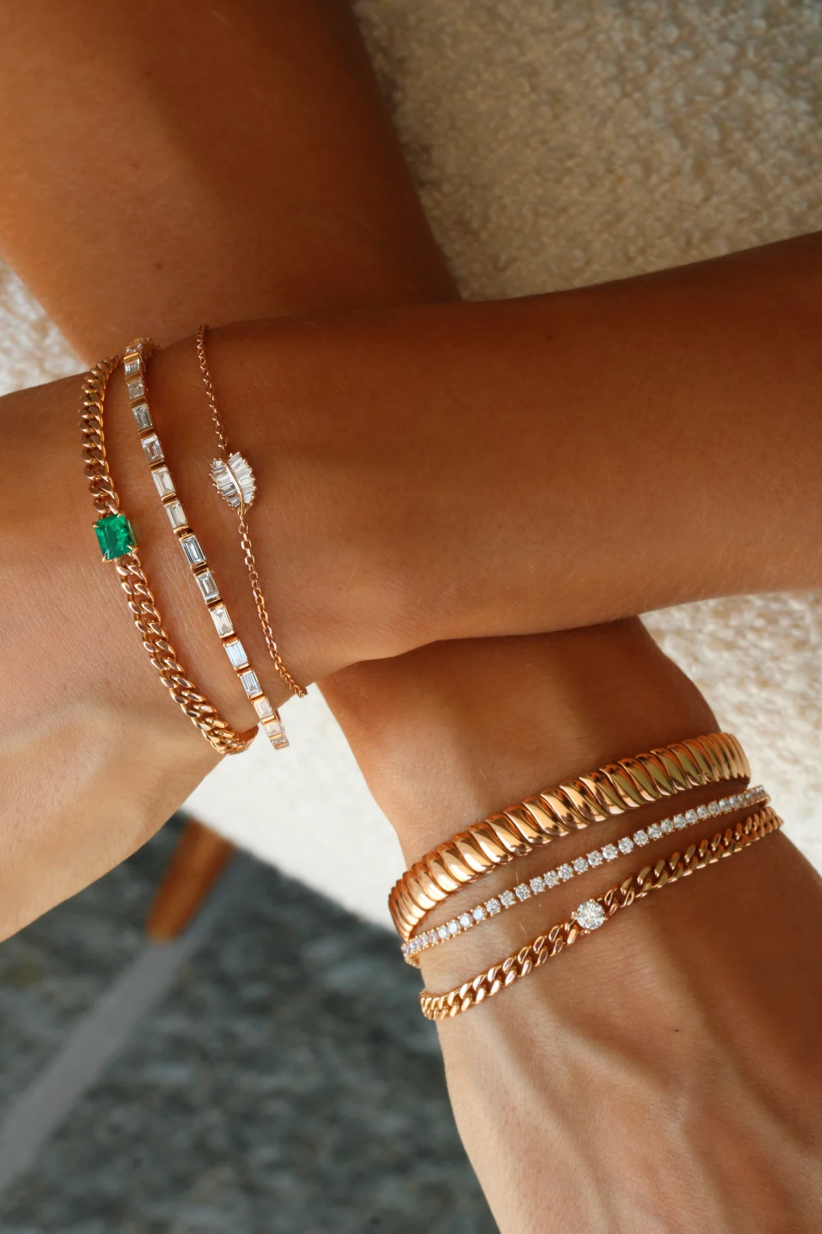 "(《世界人权宣言》) 14K 纯金古巴链节手链(中间镶嵌祖母绿 堪称杰作,将奢华工艺与永恒之美完美融合。这款古巴链式手链采用优质14K金打造,设计经典,经久耐用,外观惊艳。