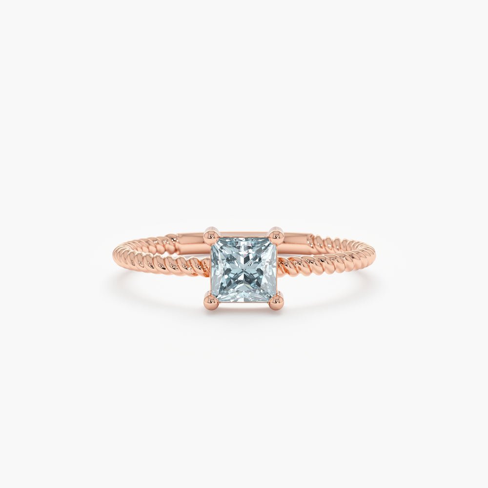 令人惊艳的 14K 纯金方形海蓝宝石戒指,镶嵌一颗鲜艳的方形海蓝宝石,镶嵌在光滑优雅的底座上,呈现出永恒的外观。
