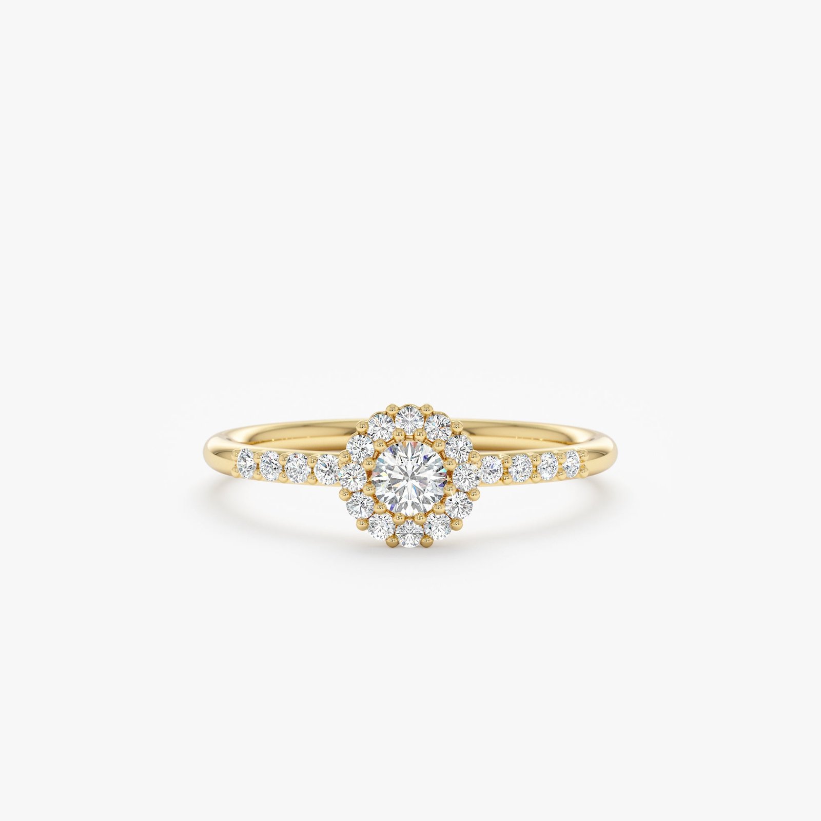 14K 纯金单颗钻石订婚戒指,镶嵌经 GIA 认证的天然钻石。有 0.03 至 0.21 克拉 4 种尺寸可供选择。简约而永恒。