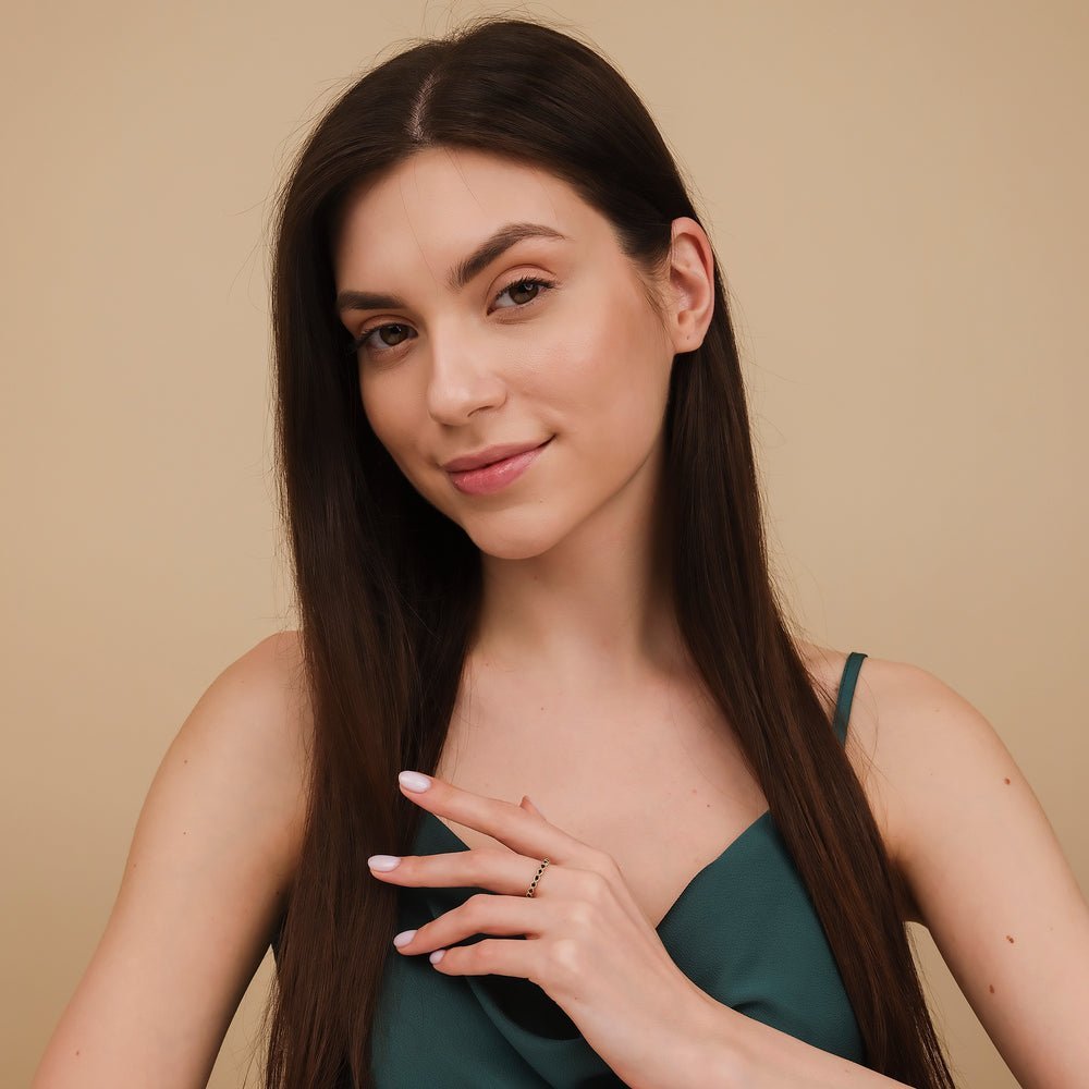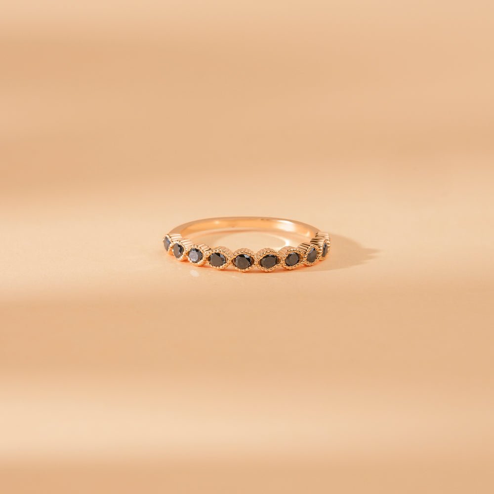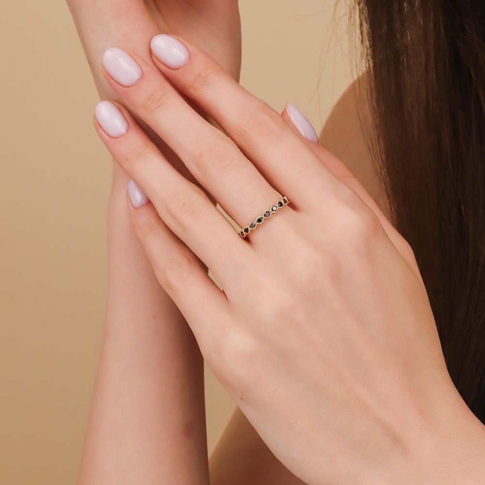 14K 纯金黑色天然钻石半永恒戒指