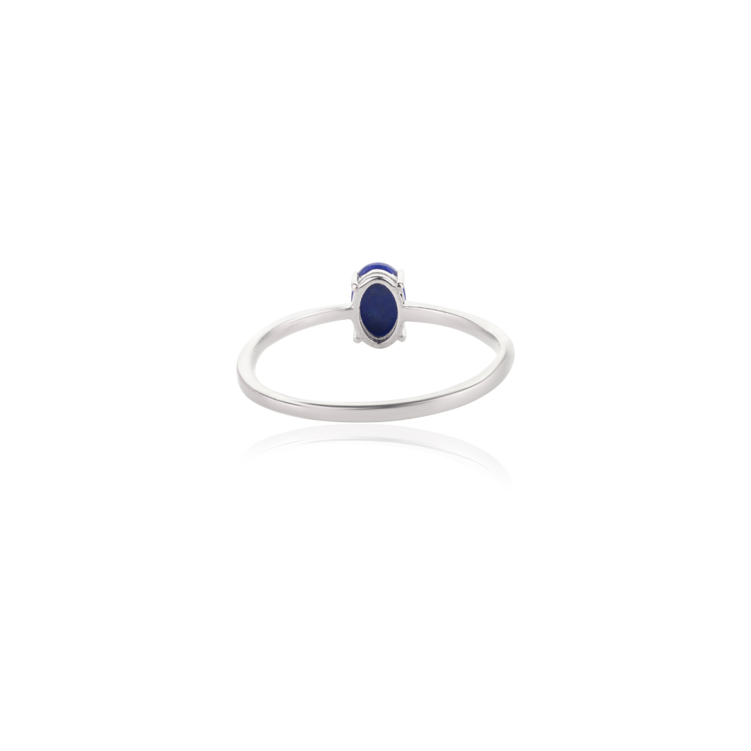 "(《世界人权宣言》) 14K纯金青金石戒指 这枚令人惊艳的戒指,完美融合了青金石的深邃魅力与白金的隽永优雅。这款戒指采用14K纯金打造,镶嵌一颗迷人的0.38克拉椭圆形青金石,尺寸为6 x 4毫米。青金石浓郁的蓝色调与白金的冷色调相得益彰,营造出和谐夺目的视觉效果。