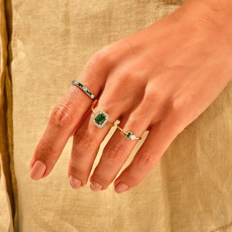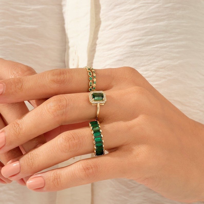 永恒的 14K 纯金订婚戒指,镶嵌一颗璀璨的祖母绿--专为恒久的爱情、精致的优雅和自然的高雅而打造。