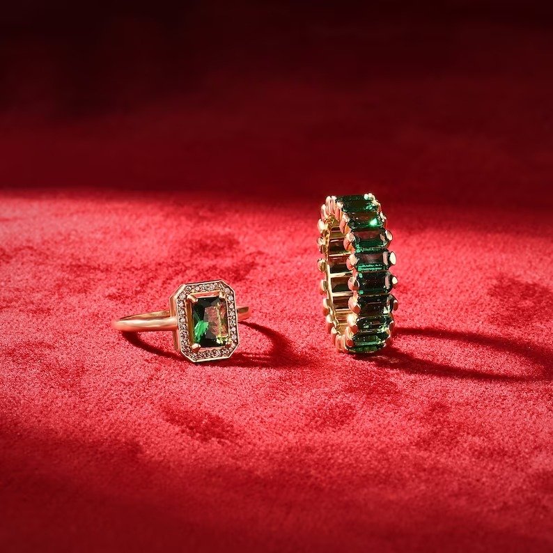 14K 纯金祖母绿订婚戒指