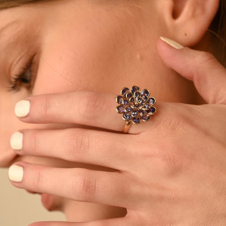 14K Solid Gold Tanzanite And Diamond Cluster Ring 有 2 个评价