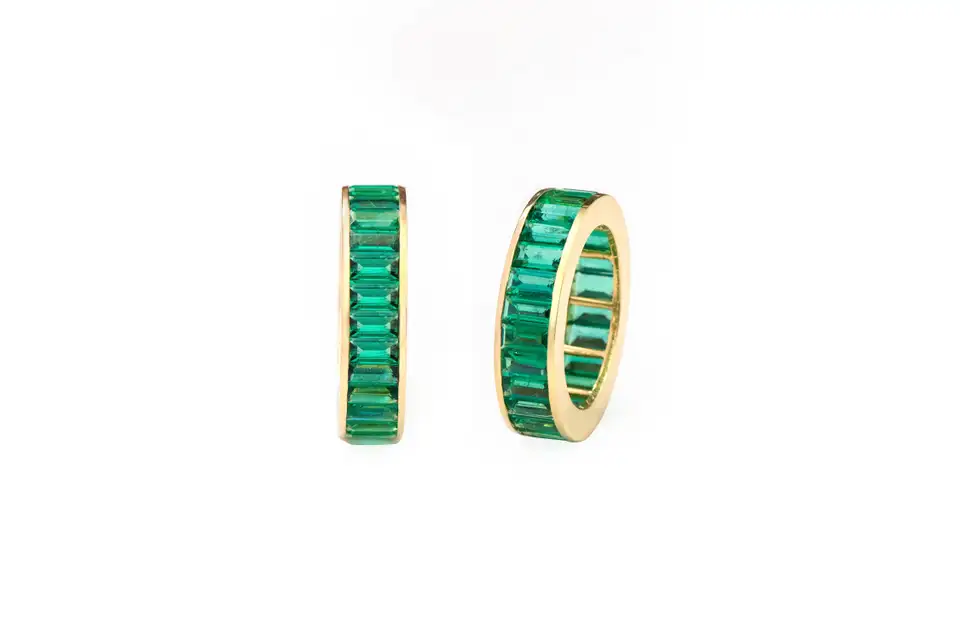 14K 纯金永恒戒指,镶嵌鲜艳的祖母绿--专为持久的爱情、自然的优雅和璀璨的绿色精致而打造。