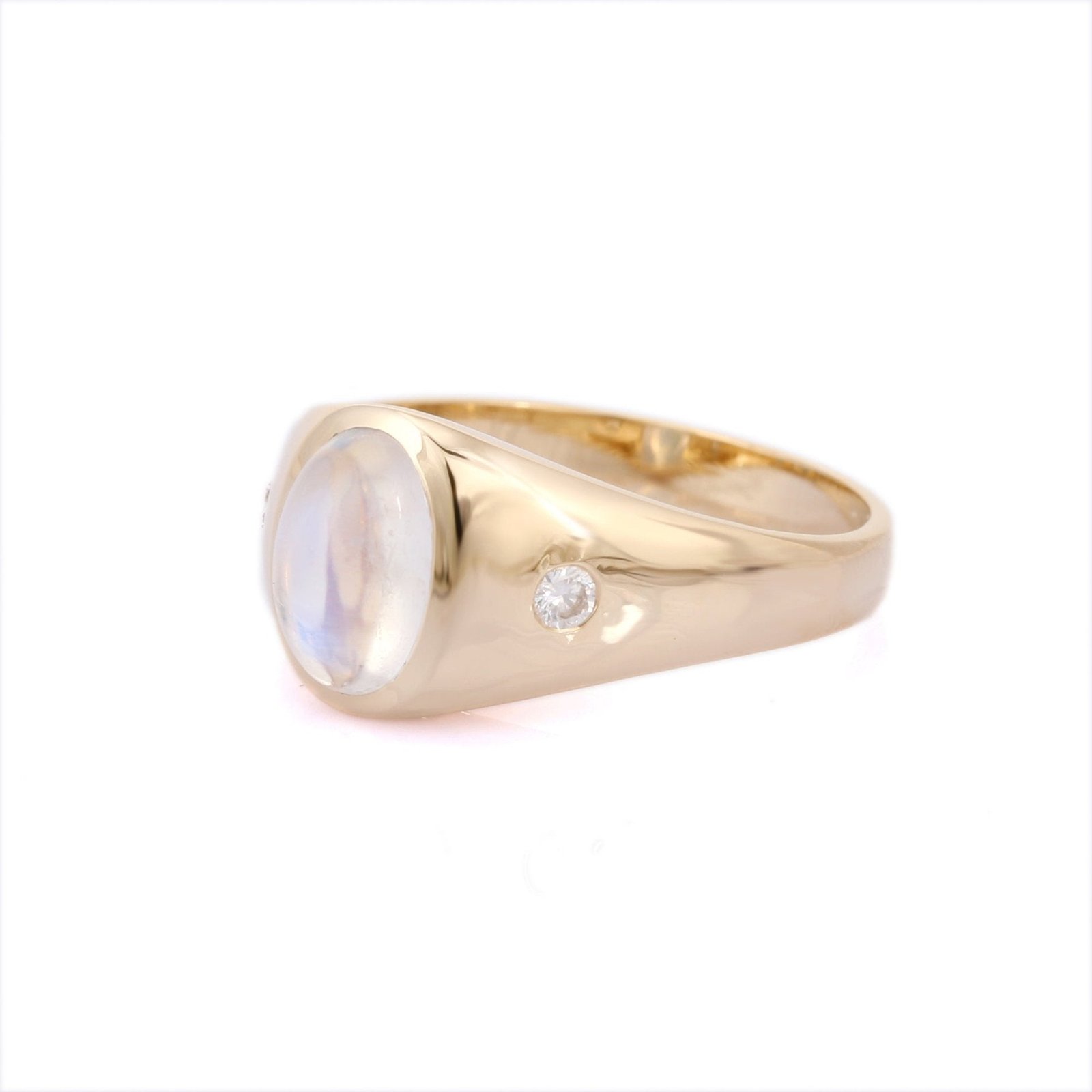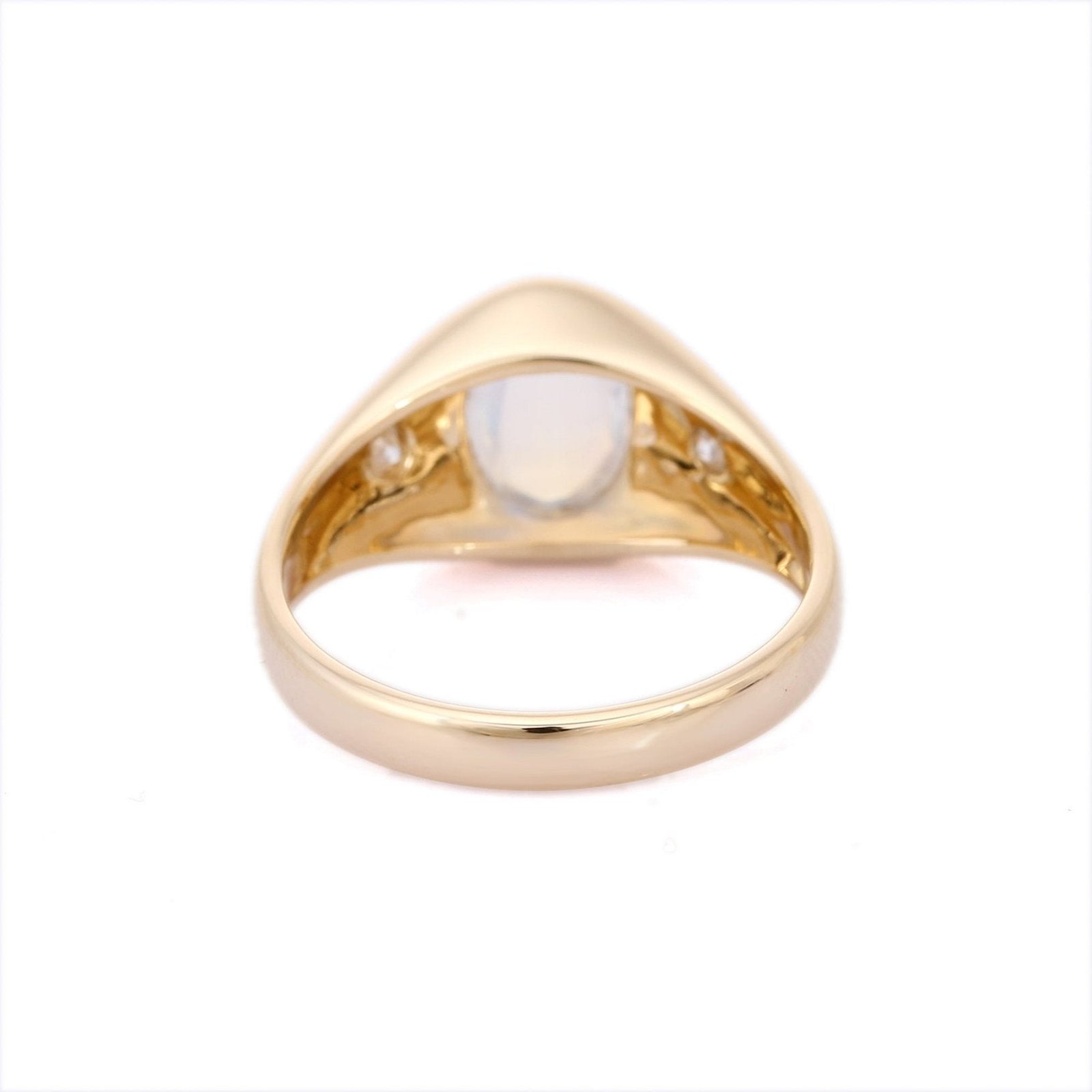 这款戒指总重4.975克,厚重而舒适,无论日常佩戴还是特殊场合,都堪称完美。14K黄金戒圈营造出温暖丰富的氛围,与彩虹宝石的鲜艳色彩和钻石的璀璨光芒相得益彰。
