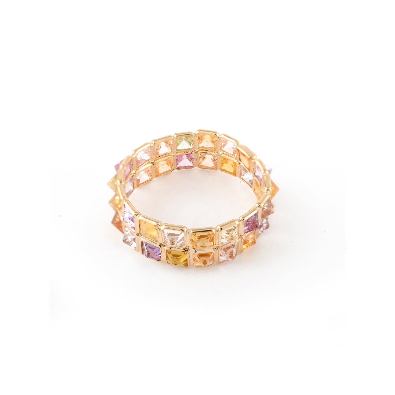 活力四射的 14K 纯金双层永恒戒,镶嵌多彩蓝宝石,璀璨夺目,魅力四射,设计永恒。