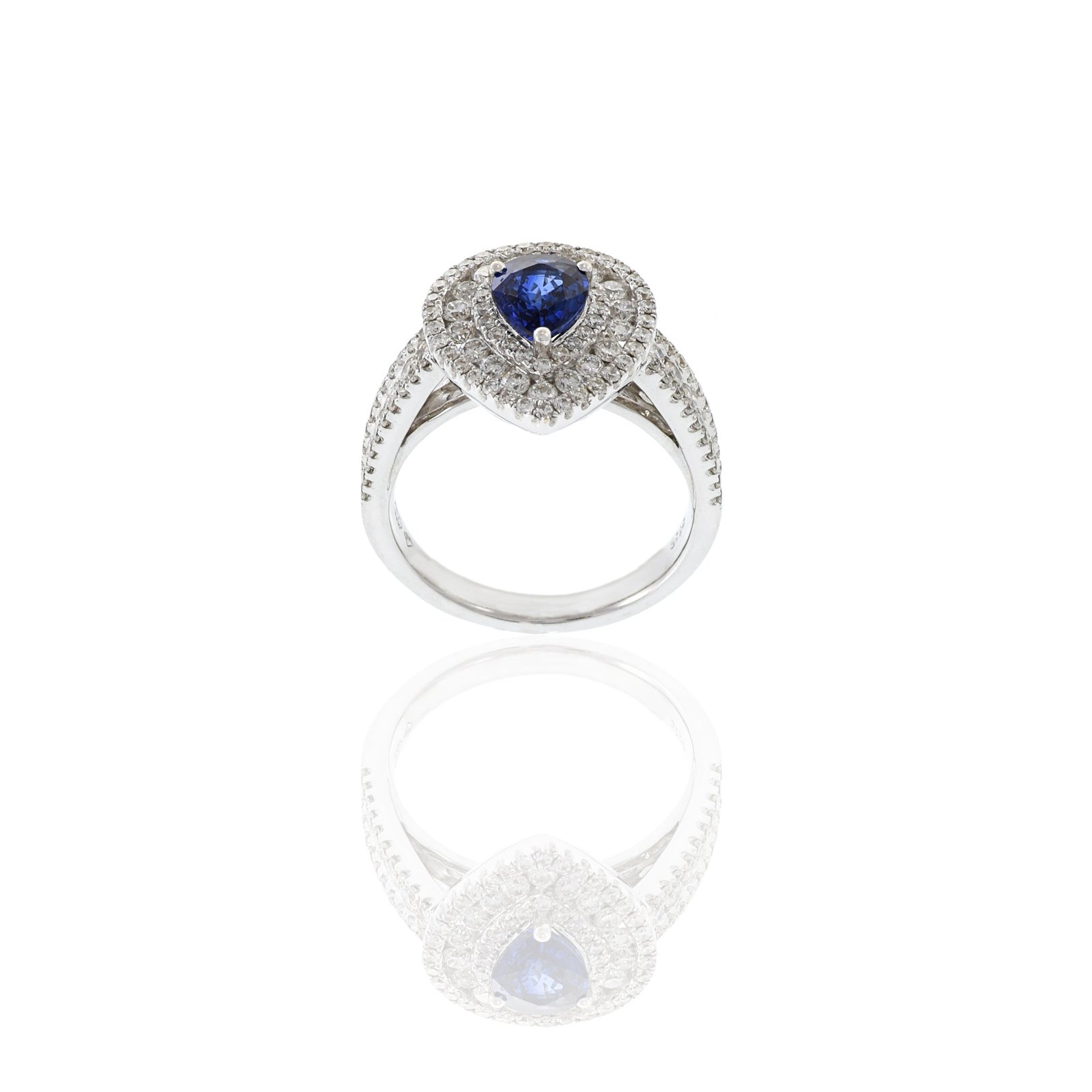 钻石和梨形切割海蓝宝石戒指