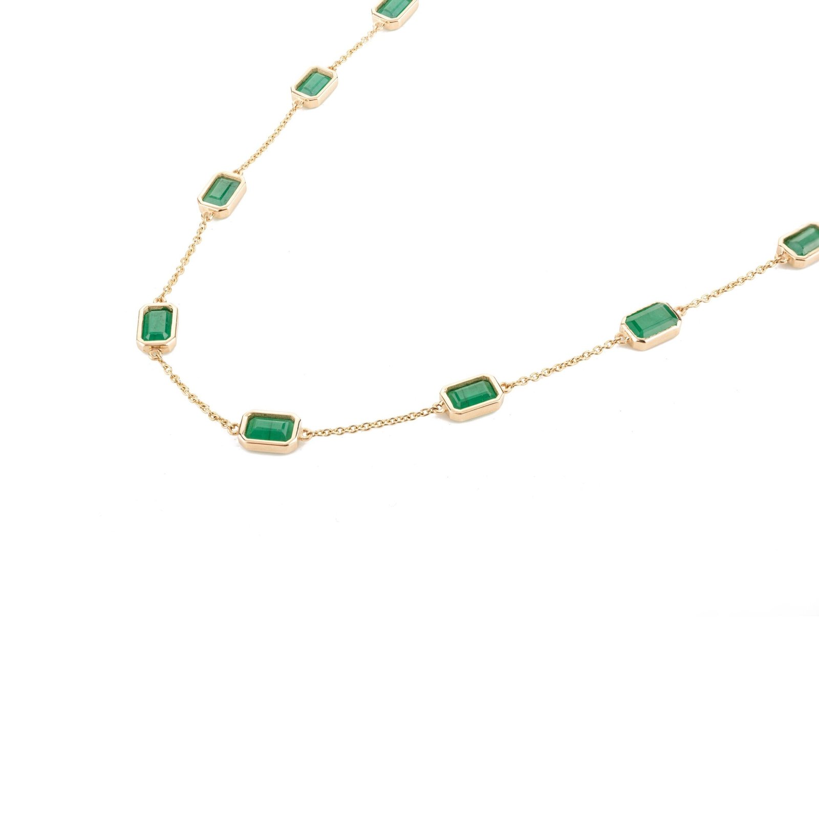 14K 纯黄金祖母绿链式项链是一件体现优雅与奢华的永恒单品,非常适合为您的珠宝收藏增添一丝精致,或作为送给爱人的有意义的礼物。